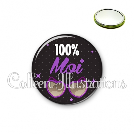 Miroir simple avec dos métallique décoré d'une image fantaisie et texte.