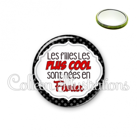 Miroir simple avec dos métallique décoré d'une image fantaisie et texte.