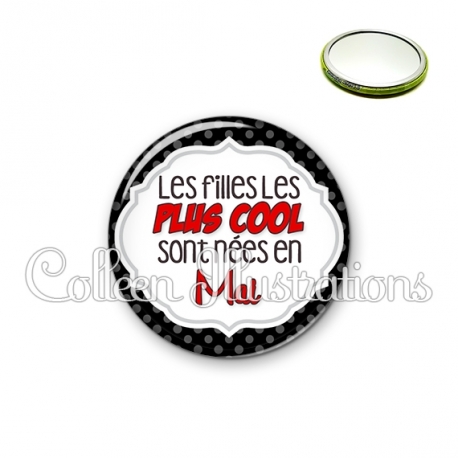 Miroir simple avec dos métallique décoré d'une image fantaisie et texte.