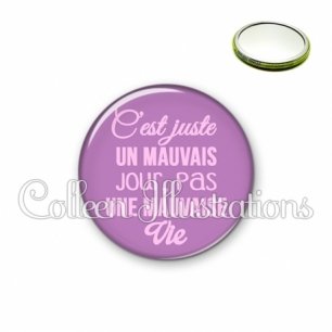 Miroir simple avec dos métallique décoré d'une image fantaisie et texte.
