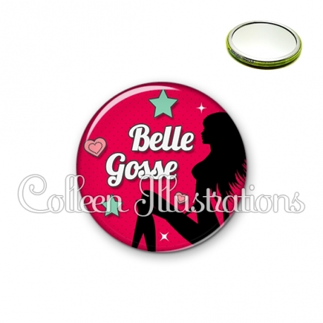 Miroir simple avec dos métallique décoré d'une image fantaisie et texte.