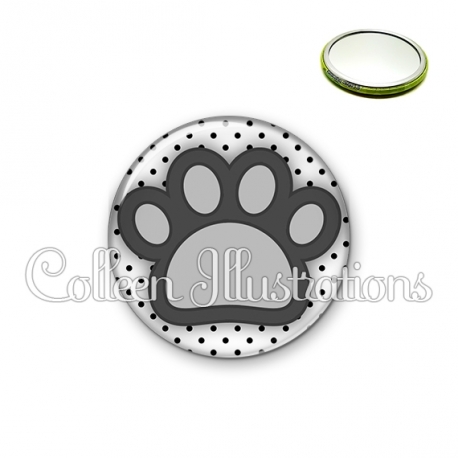 Image imprimée en haute résolution sur papier de qualité, protégée d'un film plastique, et sertie sur une coque métallique avec dos miroir. Une seule face, non grossissante.