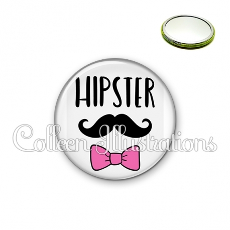 Miroir simple avec dos métallique décoré d'une image fantaisie et texte.