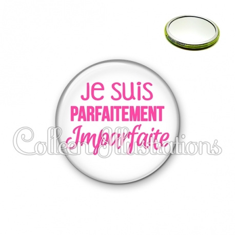 Miroir simple avec dos métallique décoré d'une image fantaisie et texte.