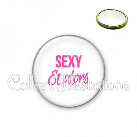 Miroir simple avec dos métallique décoré d'une image fantaisie et texte.