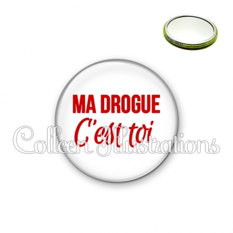 Miroir simple avec dos métallique décoré d'une image fantaisie et texte.