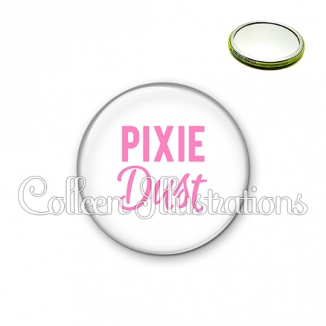Miroir simple avec dos métallique décoré d'une image fantaisie et texte.