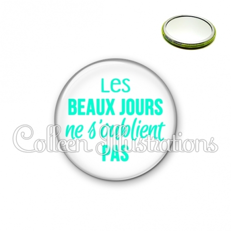 Miroir simple avec dos métallique décoré d'une image fantaisie et texte.