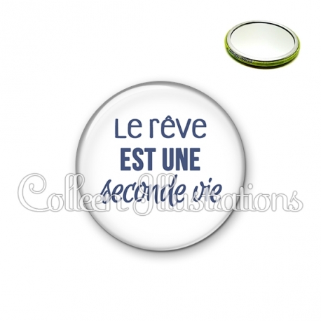 Miroir simple avec dos métallique décoré d'une image fantaisie et texte.