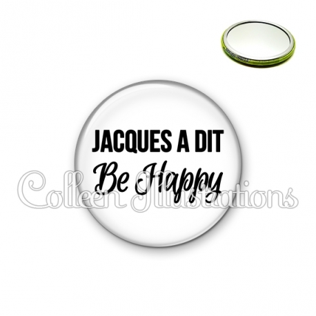Miroir simple avec dos métallique décoré d'une image fantaisie et texte.