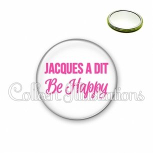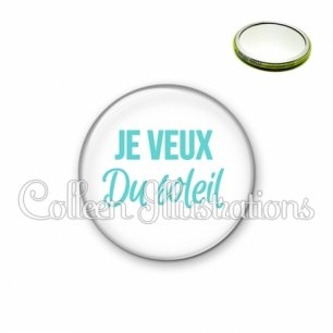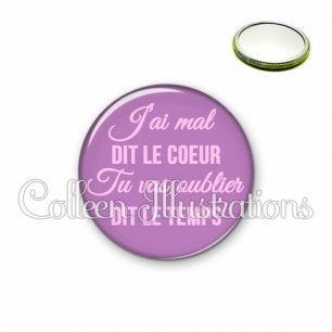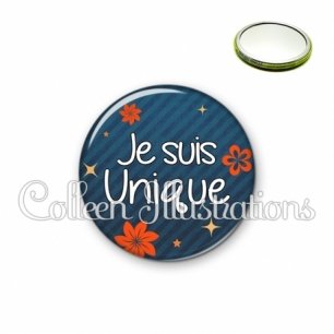Miroir simple avec dos métallique décoré d'une image fantaisie et texte.