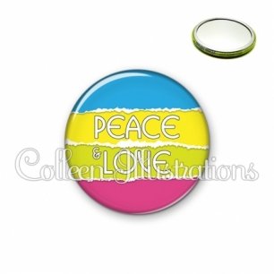 Image imprimée en haute résolution sur papier de qualité, protégée d'un film plastique, et sertie sur une coque métallique avec dos miroir. Une seule face, non grossissante.