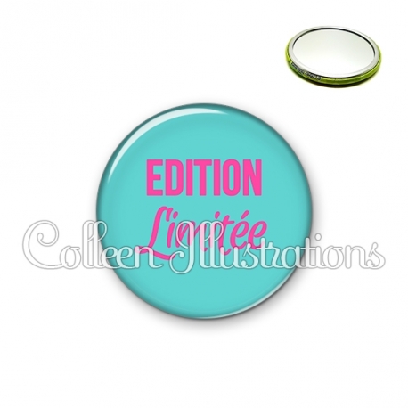 Miroir simple avec dos métallique décoré d'une image fantaisie et texte.
