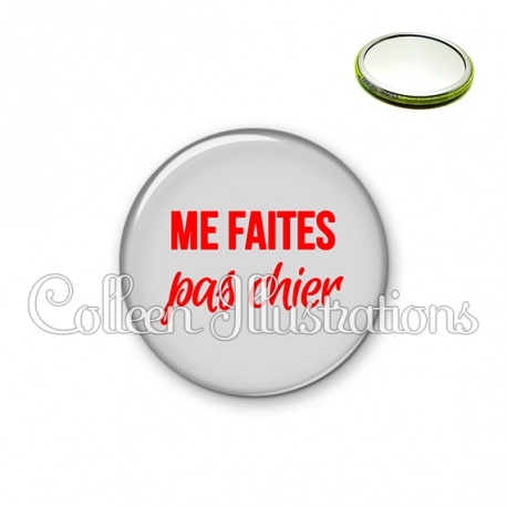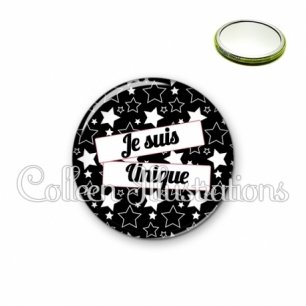 Miroir simple avec dos métallique décoré d'une image fantaisie et texte.