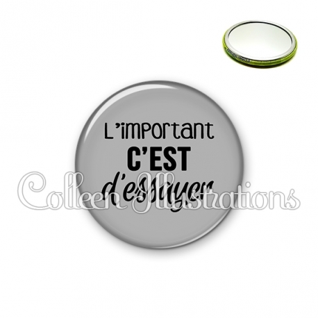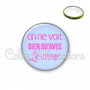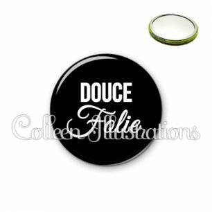 Miroir simple avec dos métallique décoré d'une image fantaisie et texte.