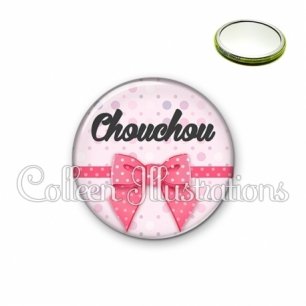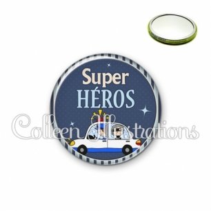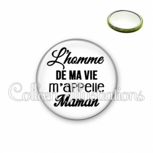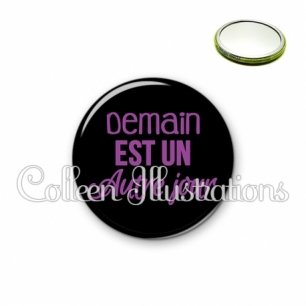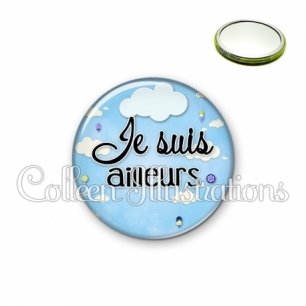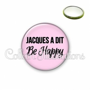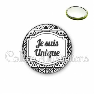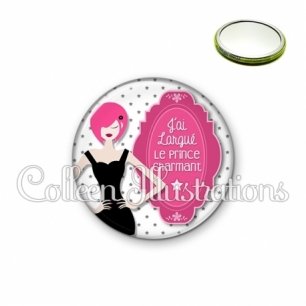 Miroir simple avec dos métallique décoré d'une image fantaisie et texte.