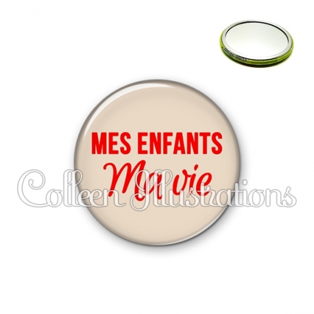 Miroir simple avec dos métallique décoré d'une image fantaisie et texte.