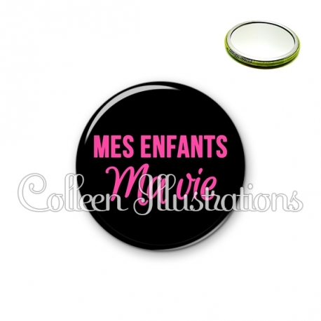 Miroir simple avec dos métallique décoré d'une image fantaisie et texte.