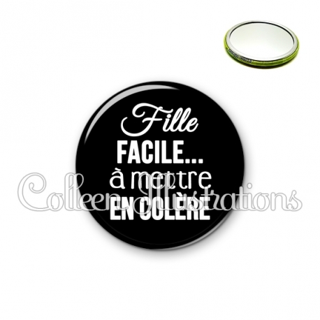 Miroir simple avec dos métallique décoré d'une image fantaisie et texte.