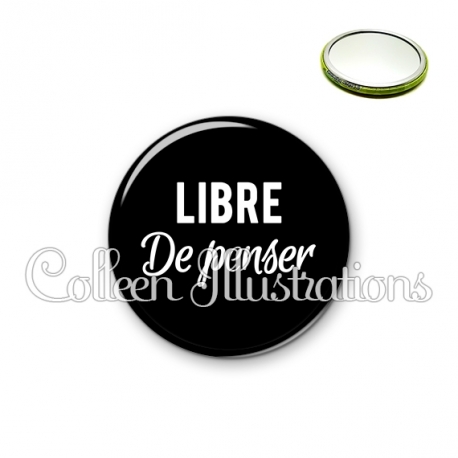 Miroir simple avec dos métallique décoré d'une image fantaisie et texte.