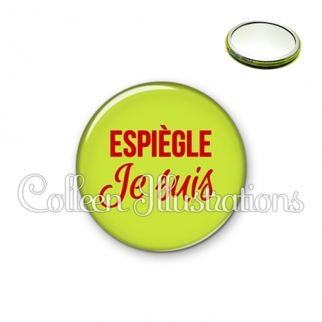 Miroir simple avec dos métallique décoré d'une image fantaisie et texte.