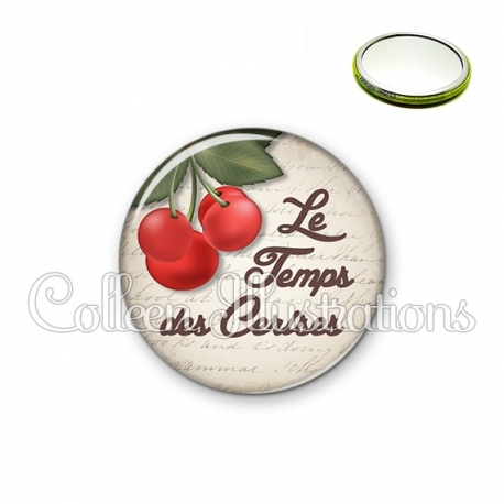 Image imprimée en haute résolution sur papier de qualité, protégée d'un film plastique, et sertie sur une coque métallique avec dos miroir. Une seule face, non grossissante.