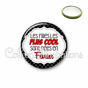 Miroir simple avec dos métallique décoré d'une image fantaisie et texte.