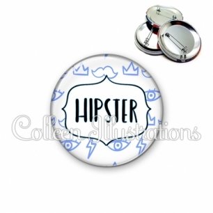 Image imprimée en haute résolution sur papier de qualité, protégée d'un film plastique, et sertie sur une coque et épingle métallique.
