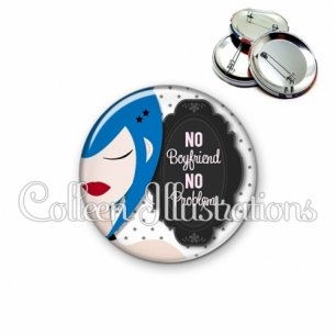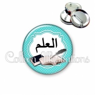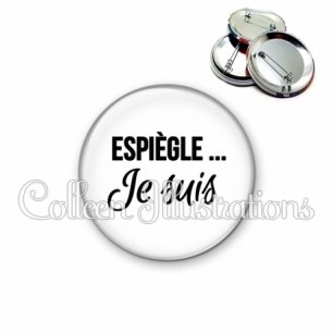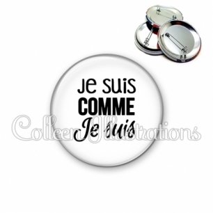 Image imprimée en haute résolution sur papier de qualité, protégée d'un film plastique, et sertie sur une coque et épingle métallique.