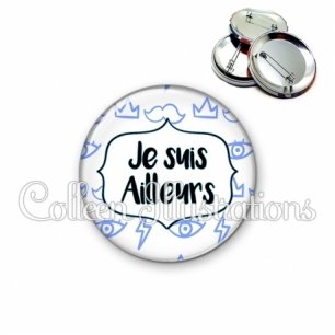 Image imprimée en haute résolution sur papier de qualité, protégée d'un film plastique, et sertie sur une coque et épingle métallique.