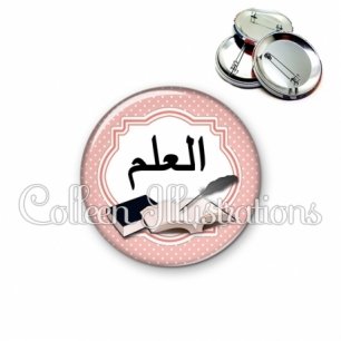 Image imprimée en haute résolution sur papier de qualité, protégée d'un film plastique, et sertie sur une coque et épingle métallique.