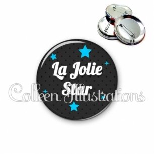Image imprimée en haute résolution sur papier de qualité, protégée d'un film plastique, et sertie sur une coque et épingle métallique.