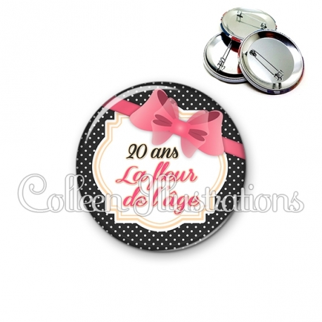 Badge 20 ans la fleur de l'âge.