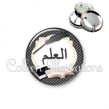 Image imprimée en haute résolution sur papier de qualité, protégée d'un film plastique, et sertie sur une coque et épingle métallique.