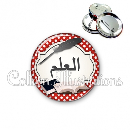 Badge Plume livre écriture arabe.