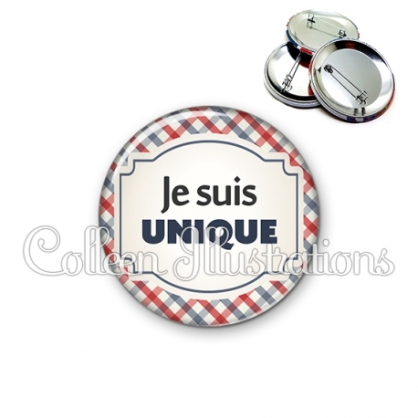 Image imprimée en haute résolution sur papier de qualité, protégée d'un film plastique, et sertie sur une coque et épingle métallique.