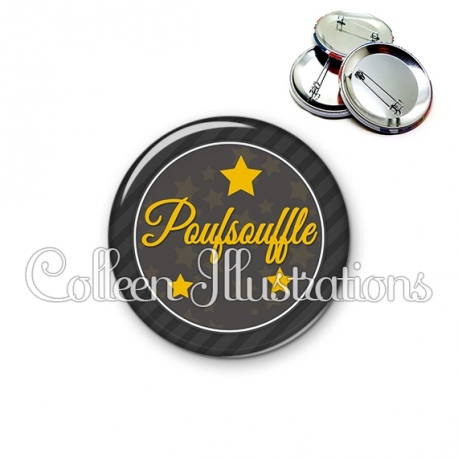 Image imprimée en haute résolution sur papier de qualité, protégée d'un film plastique, et sertie sur une coque et épingle métallique.