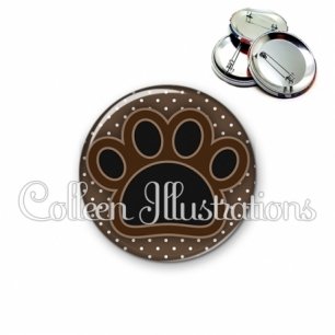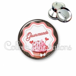 Image imprimée en haute résolution sur papier de qualité, protégée d'un film plastique, et sertie sur une coque et épingle métallique.