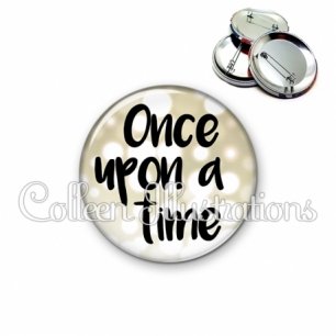 Image imprimée en haute résolution sur papier de qualité, protégée d'un film plastique, et sertie sur une coque et épingle métallique.