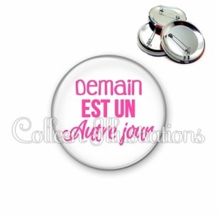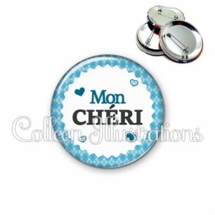 Image imprimée en haute résolution sur papier de qualité, protégée d'un film plastique, et sertie sur une coque et épingle métallique.