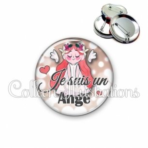 Image imprimée en haute résolution sur papier de qualité, protégée d'un film plastique, et sertie sur une coque et épingle métallique.
