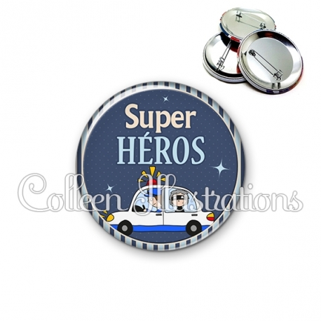 Image imprimée en haute résolution sur papier de qualité, protégée d'un film plastique, et sertie sur une coque et épingle métallique.
