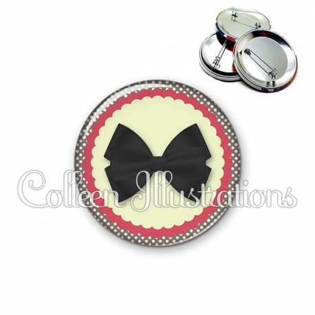 Image imprimée en haute résolution sur papier de qualité, protégée d'un film plastique, et sertie sur une coque et épingle métallique.