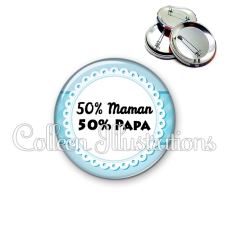 Image imprimée en haute résolution sur papier de qualité, protégée d'un film plastique, et sertie sur une coque et épingle métallique.