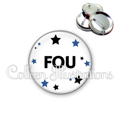 Image imprimée en haute résolution sur papier de qualité, protégée d'un film plastique, et sertie sur une coque et épingle métallique.