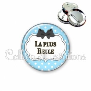 Image imprimée en haute résolution sur papier de qualité, protégée d'un film plastique, et sertie sur une coque et épingle métallique.