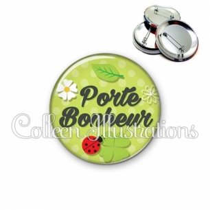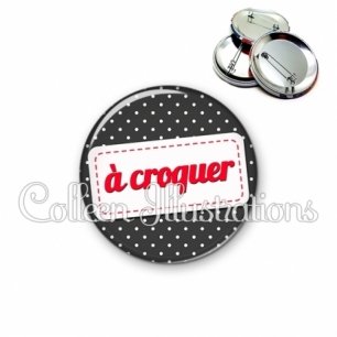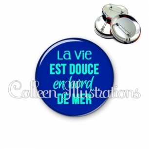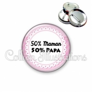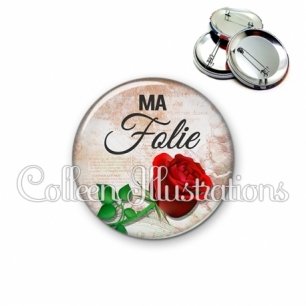 Image imprimée en haute résolution sur papier de qualité, protégée d'un film plastique, et sertie sur une coque et épingle métallique.