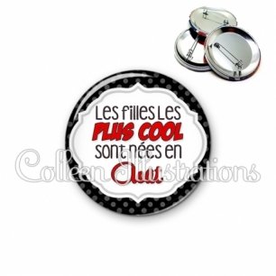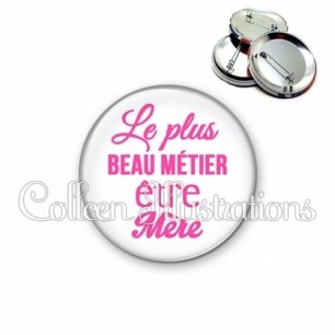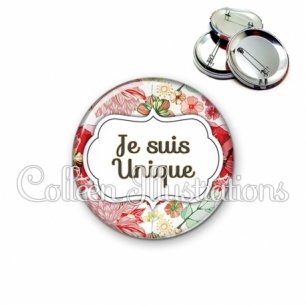 Image imprimée en haute résolution sur papier de qualité, protégée d'un film plastique, et sertie sur une coque et épingle métallique.