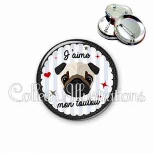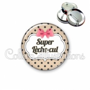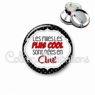 Image imprimée en haute résolution sur papier de qualité, protégée d'un film plastique, et sertie sur une coque et épingle métallique.