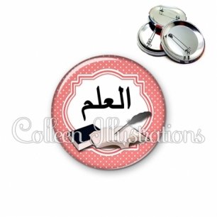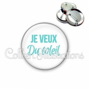 Image imprimée en haute résolution sur papier de qualité, protégée d'un film plastique, et sertie sur une coque et épingle métallique.
